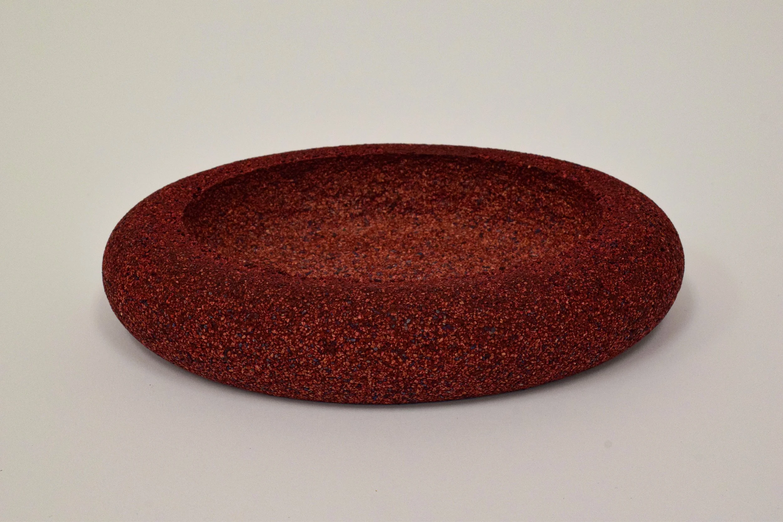 The BioCork Catchall is an experiment in color, process and material. One advantage to casting cork versus milling it that excited me was this possibility of dying different buckets of granulate different colors such as red and blue in this case and mixing them together to create a sort of speckled look that would not be possible to create through other means. I mixed this batch of cork with a gelatin based bio-resin that is completely natural as opposed to most cork binders.