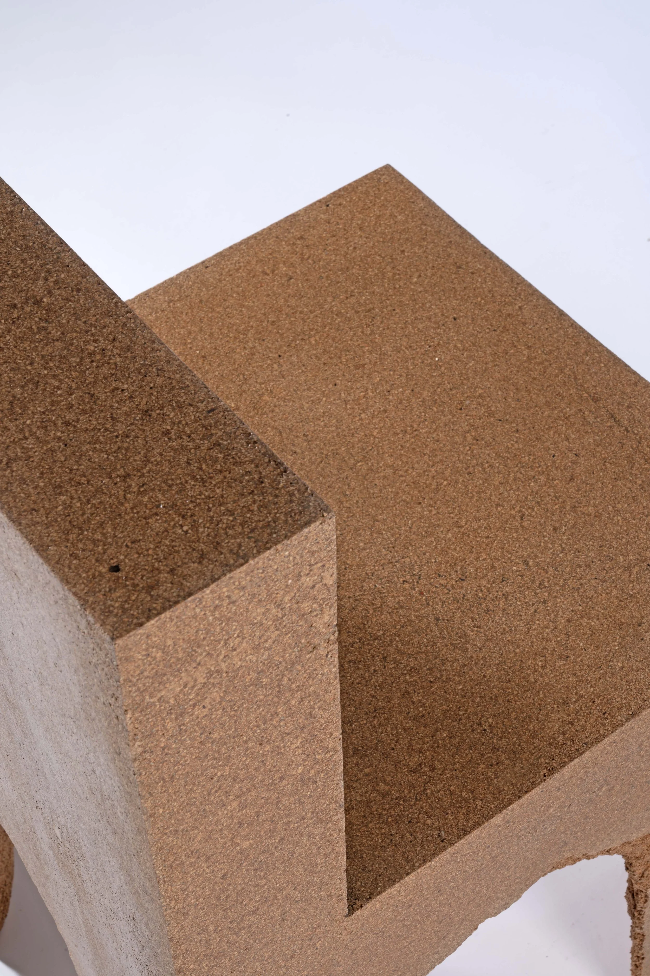 The Cast Cork Chair is a project that was guided by its process. In the early stages of working with agglomerated materials such as cork, I was experimenting with process and looking for various ways of working with this material. Most often this material is compressed in a mold under great pressure, but this chair was made through a slightly different process that involved hand packing the material onto the walls of an open face mold.